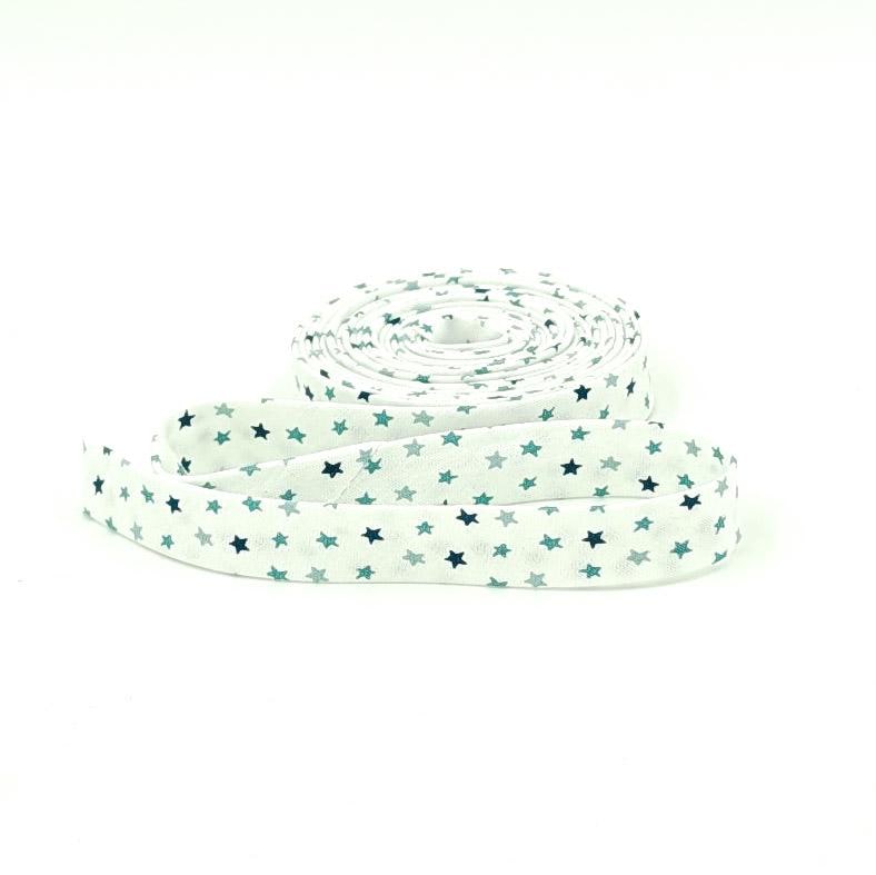 1/2" Bias Tape made from Baby Boy by Lori Whitlock for Riley Blake Designs features tiny blue stars on a snow white background.