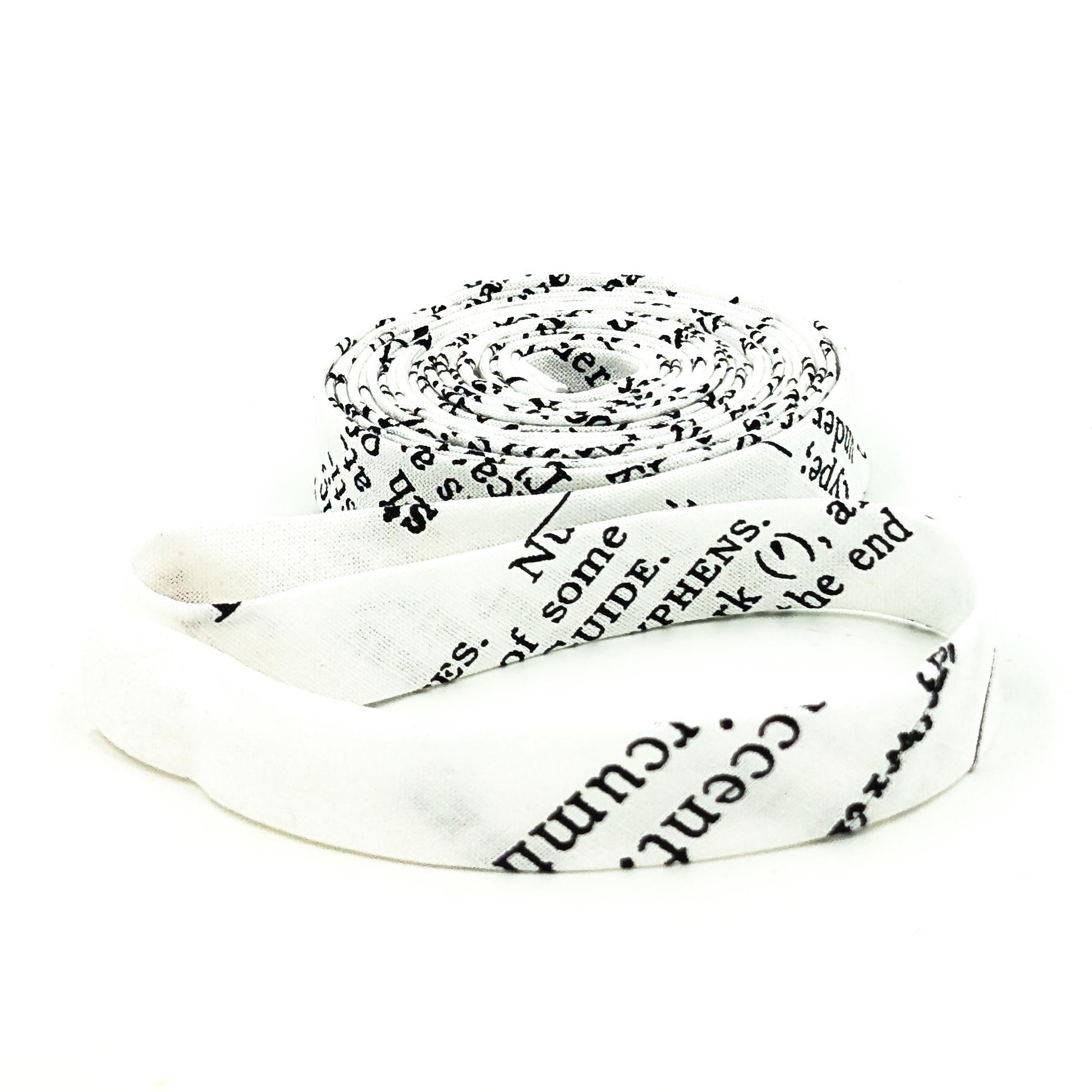 This 1/2" wide double fold bias tape is made from the Old School by J. Wecker Frisch for Riley Blake Designs, and features dictionary text on a white background.