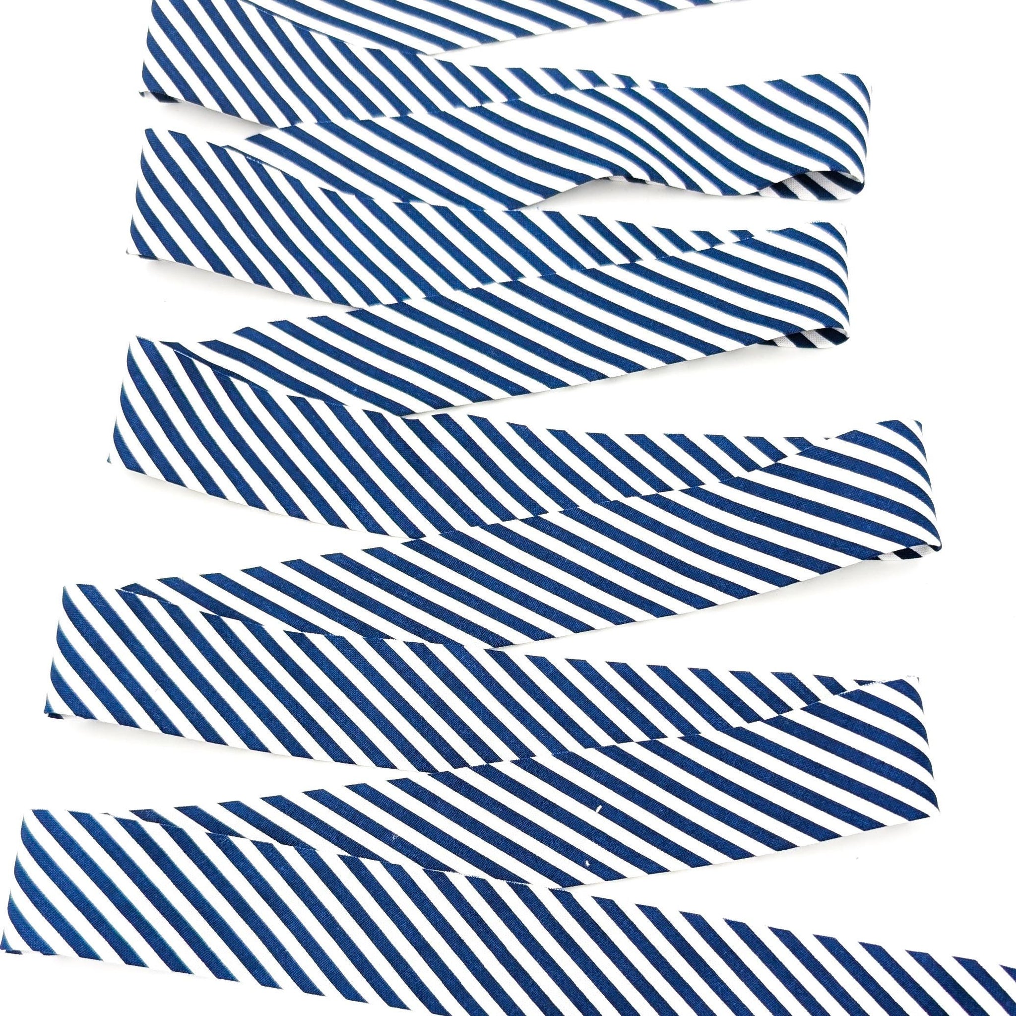 This item is 1 1/4'' quilt binding (2 1/2” strip folded in half) made from Navy and White 1/8'' Stripe for Riley Blake Designs.