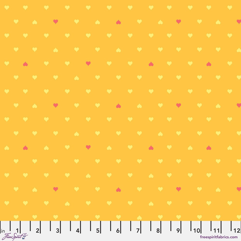 Quilt Binding Tula Pink Besties Unconditional Love Hearts Buttercup Yellow/Pink Single Fold 1 1/4" Wide