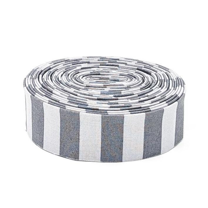 This item is 1 1/4'' inch quilt binding (2 1/2” strip folded in half) made from Tula Pink Tent Stripe Fog Gray 1/2'' Stripe.