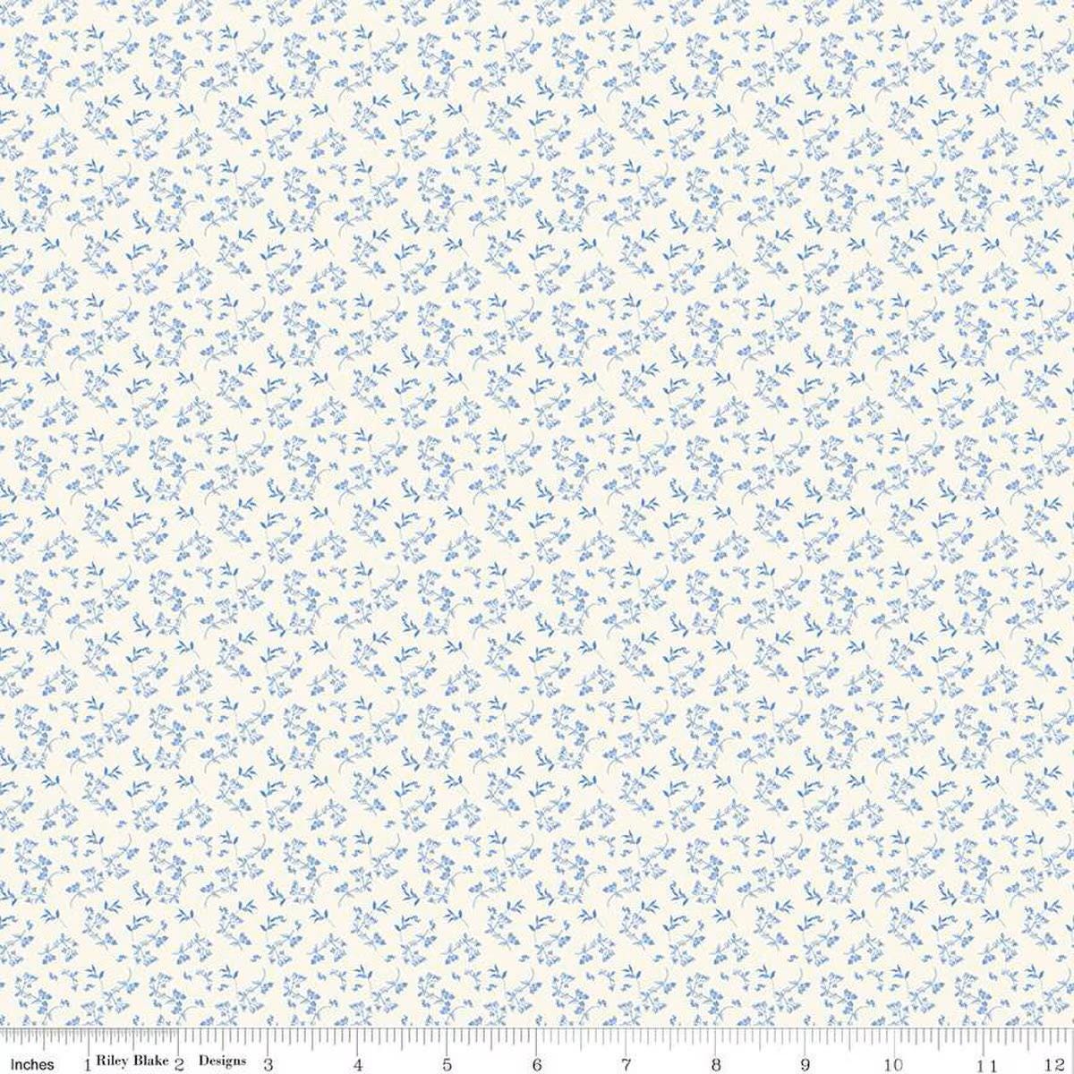 Penelope by My Mind's Eye for Riley Blake Designs features tiny tossed sprigs of leaves on a creamy white background.