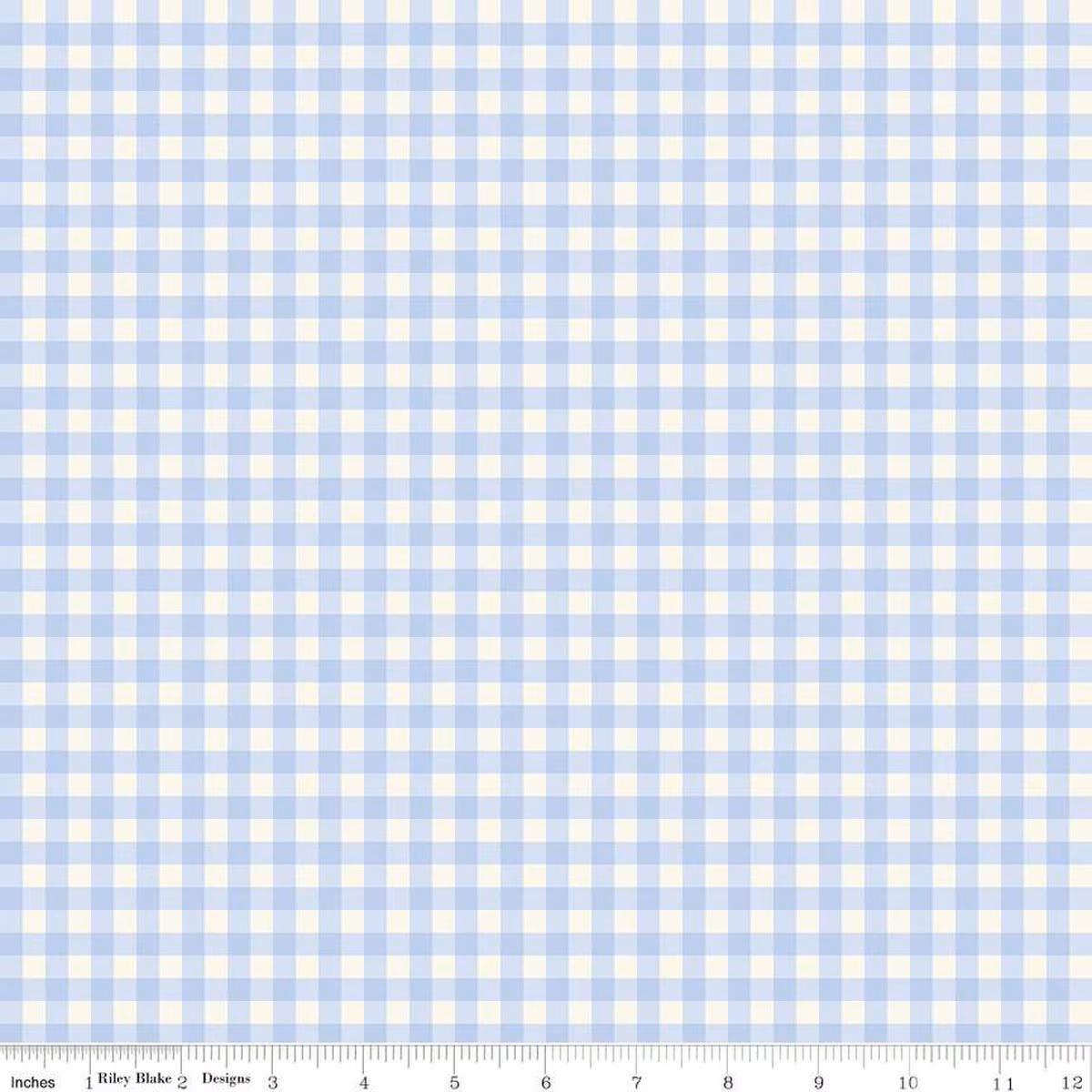 Penelope by My Mind's Eye for Riley Blake Designs features a printed gingham check plaid pattern in shades of blue and creamy white.