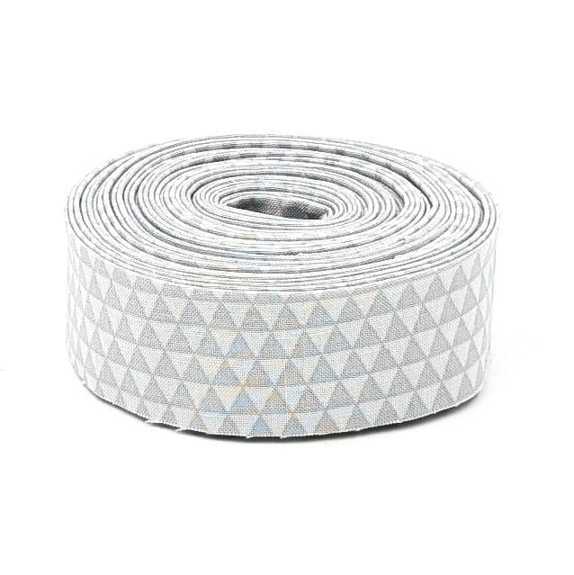 This item is 1 1/4'' quilt binding (2 1/2” bias strip folded in half) made from Tula Pink True Colors Kinda Shady. Triangles are about 1/4" long at the widest side.