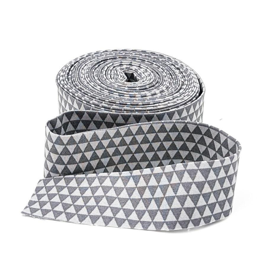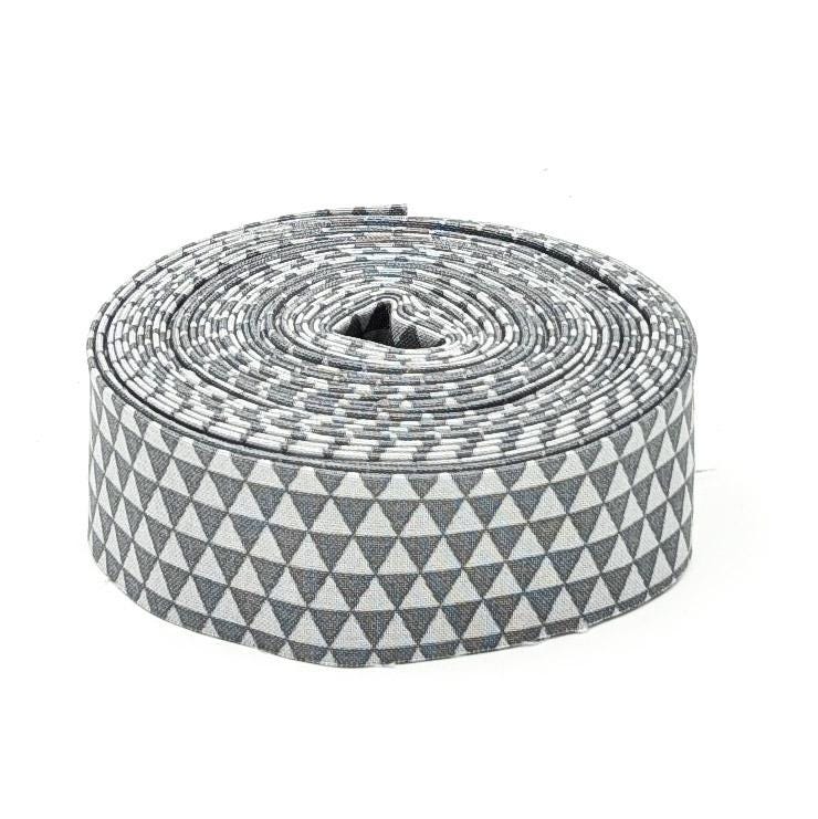 This item is 1 1/4'' quilt binding (2 1/2” bias strip folded in half) made from Tula Pink True Colors Kinda Shady. Triangles are about 1/4" long at the widest side.