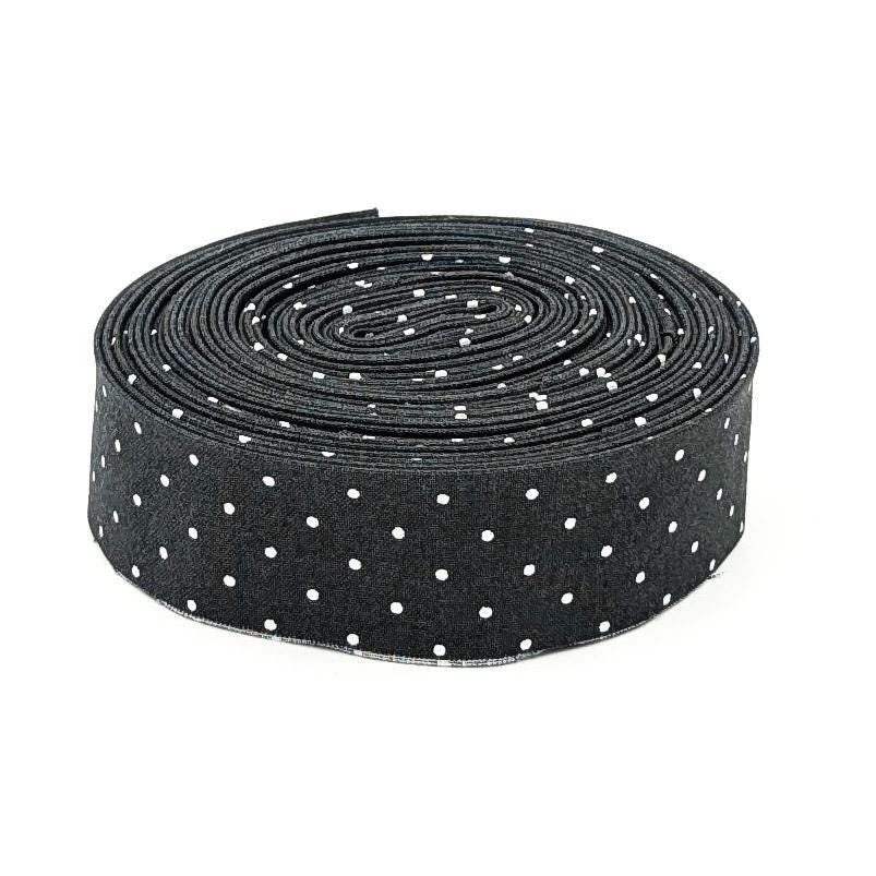 This quilt binding is 1 1/4'' inch quilt binding (2 1/2” strip folded in half) made from Tula Pink Tiny Dot Carbon Gray. Made from Tula Pink True Colors Tiny Dots from Free Spirit Fabrics. The dots are 1/16'' wide.