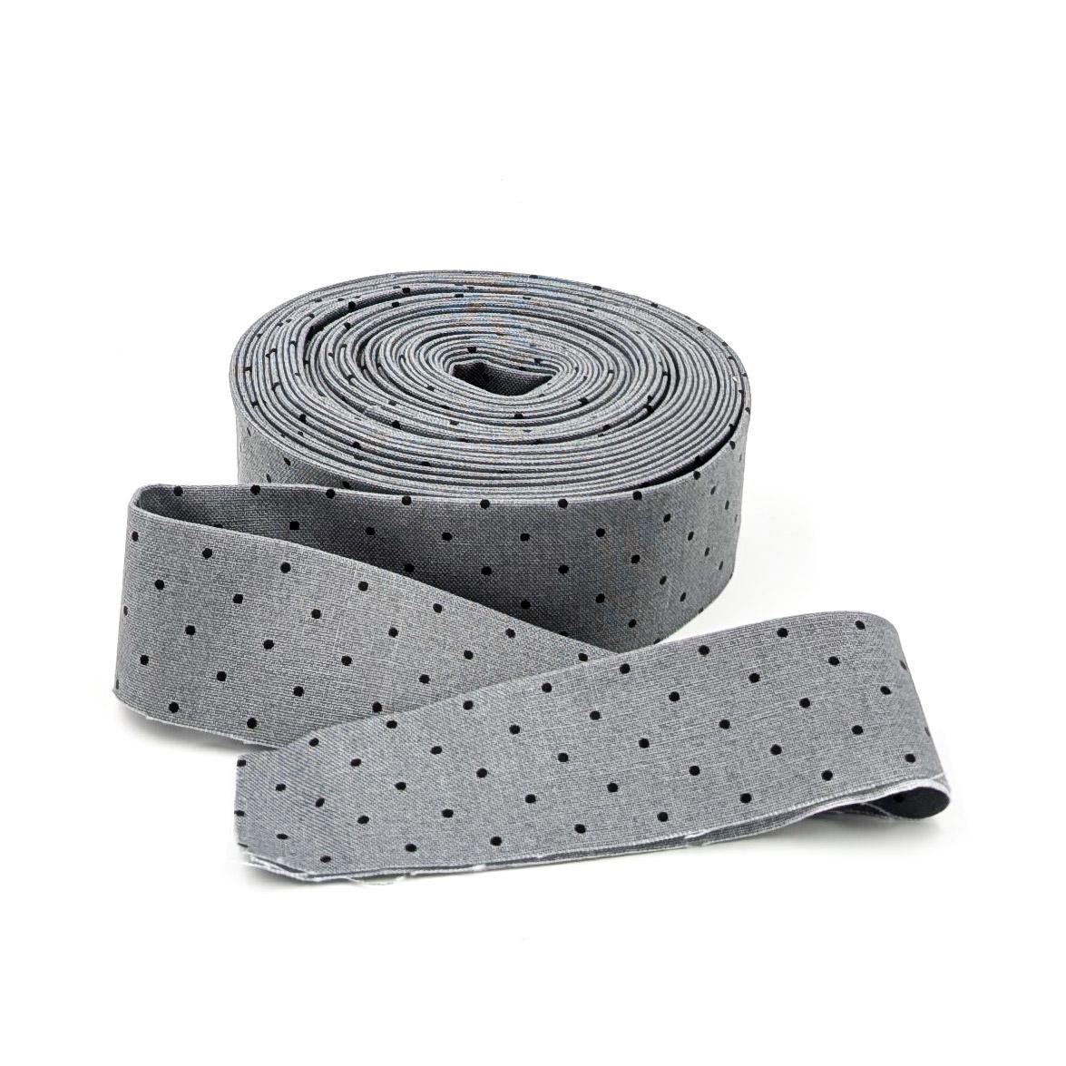 This quilt binding is 1 1/4'' inch quilt binding (2 1/2” strip folded in half) made from Tula Pink Tiny Dot Shadow Gray. Made from Tula Pink True Colors Tiny Dots from Free Spirit Fabrics. The dots are 1/16'' wide.
