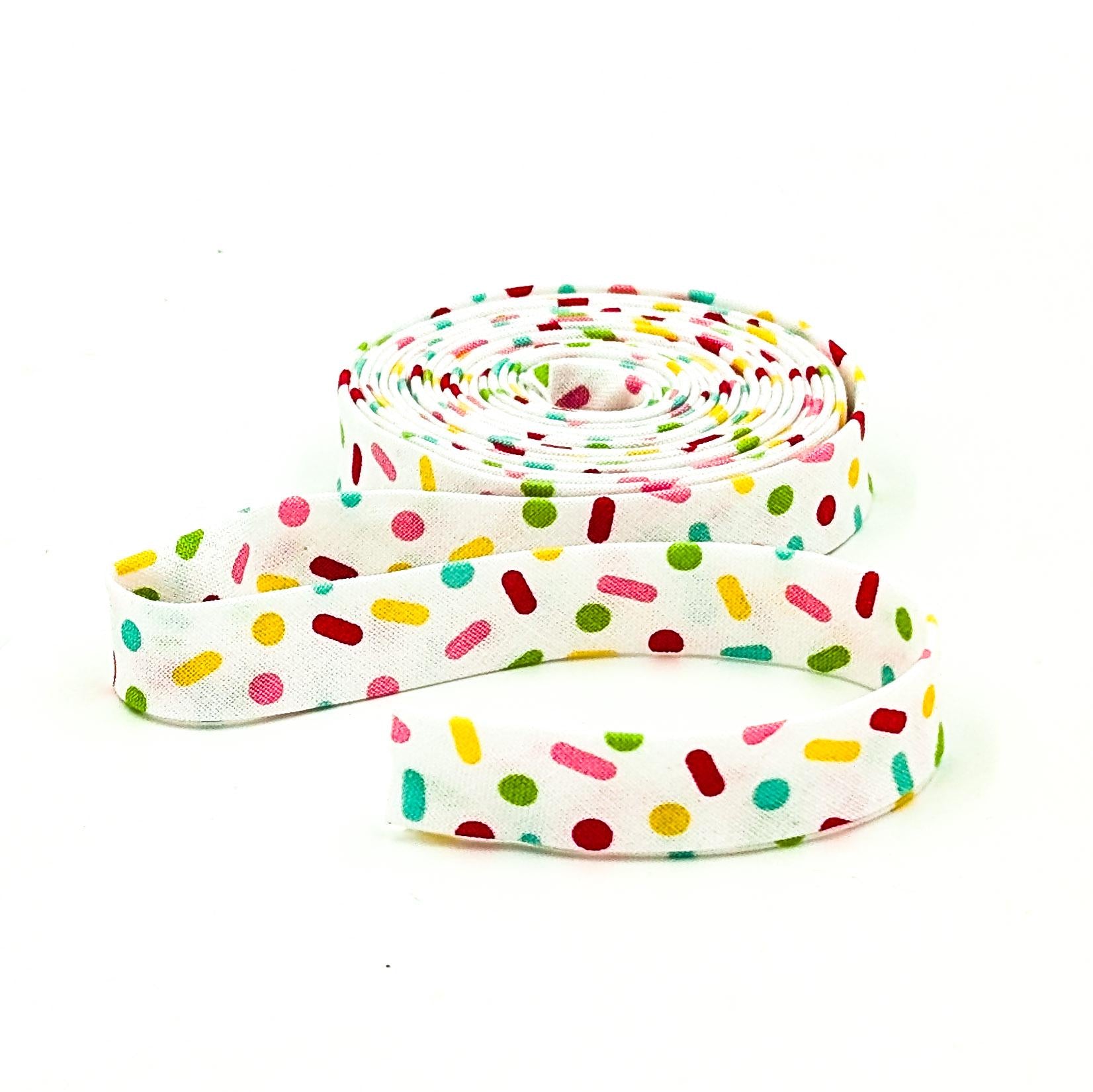 All my bias tape is rolled, so there are no creases. Perfect for embellishments, finishing seams on garments, and replacing a facing for armholes and neck openings. It's perfect for hair bows, too!